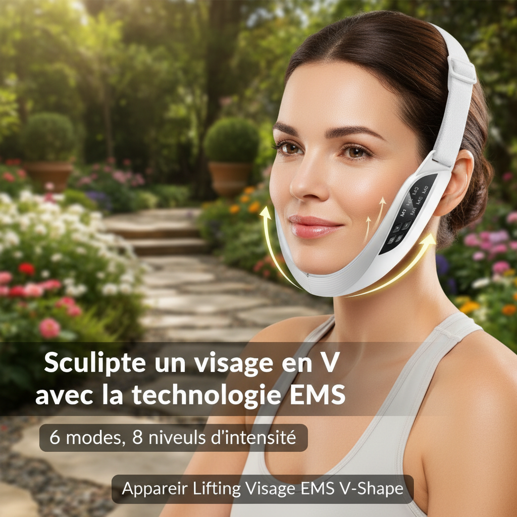 La technologie EMS stimule vos muscles faciaux pour un ovale redessiné, une peau raffermie et un double menton réduit naturellement.